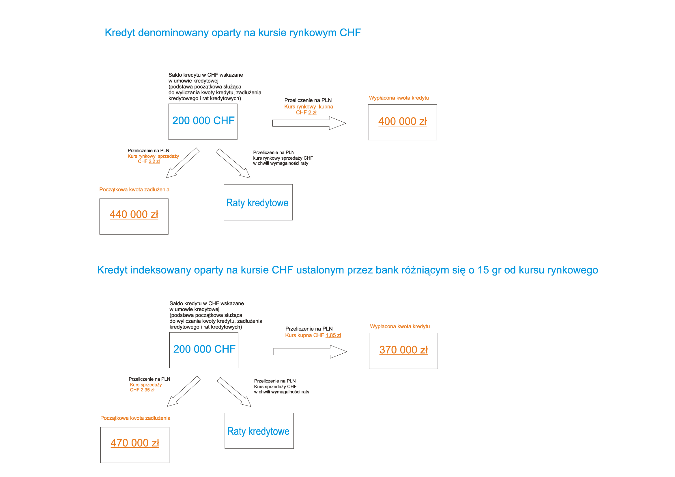 A miejmy świadomość, że w praktyce zarówno w przypadku kredytu indeksowanego jak i denominowanego wysokość wypłacanego kredytu była ustalana wg kursu kupna CHF, ale wysokość zadłużenia już wg kursu sprzedaży. Trochę inaczej to funkcjonowało przy kredycie indeksowanym, a trochę inaczej przy denominowanym, ale w praktyce tak właśnie było. Taki „mechanizm” sprawiał, że banki manipulując kursami tylko o kilkanaście groszy „na dzień dobry”, tj. już na samej operacji udzielenia kredytu, mogły powiększyć nasz dług o kilkadziesiąt tysięcy złotych a nawet i więcej (!).